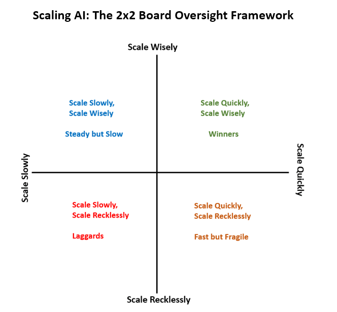 Boards that press management to scale AI both first and wisely — pairing foresight with urgency, risk management with opportunity capture, and technology with people — will do more than protect their companies.